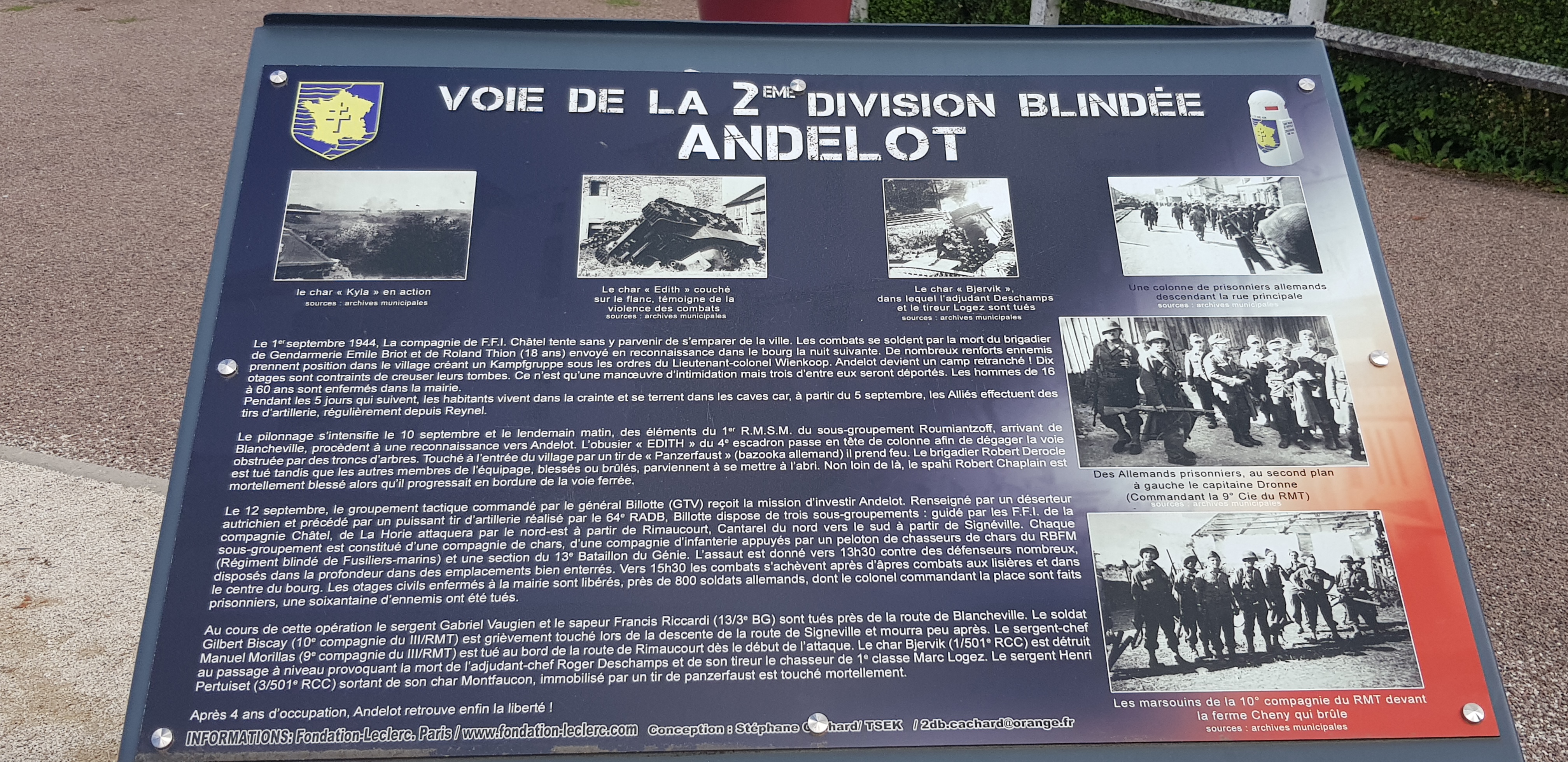 Un récapitulatif est transcrit sur des pancartes retraçant la bataille qui a eu lieu dans ce village.